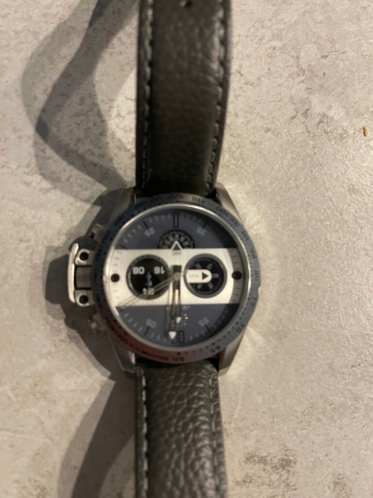 Hodinky Mazda od Jacque Lemans s chronografem a koženým páskem.průměr 44 mm, vodotěsnost 10 ATM